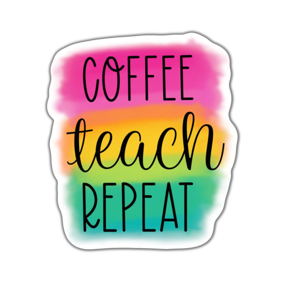 Coffee, Teach, Repeat, Adult Stickers, Custom Die Cut Stickers, Cool Stickers, Planner Stickers, Bullet Journal Calendar Stickers