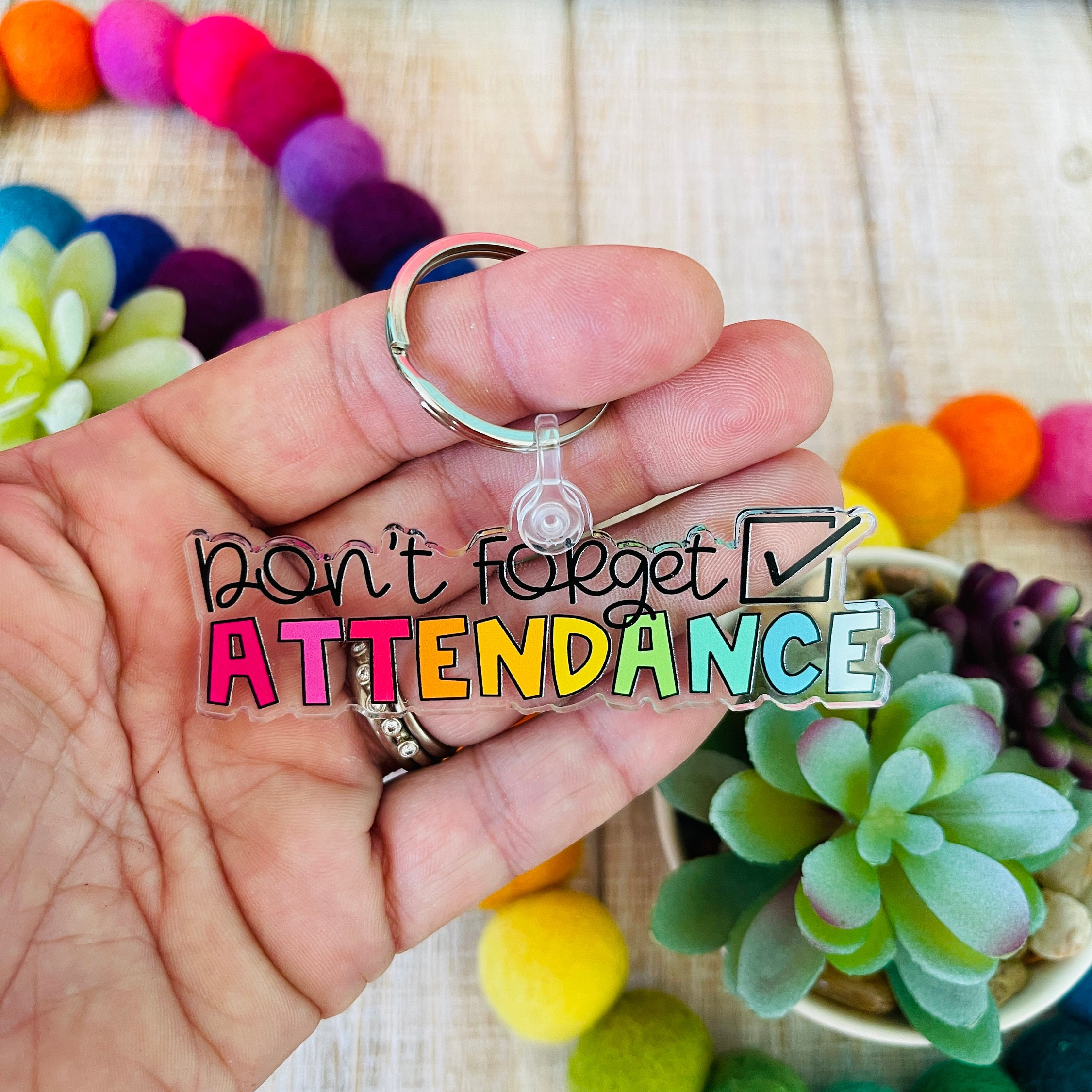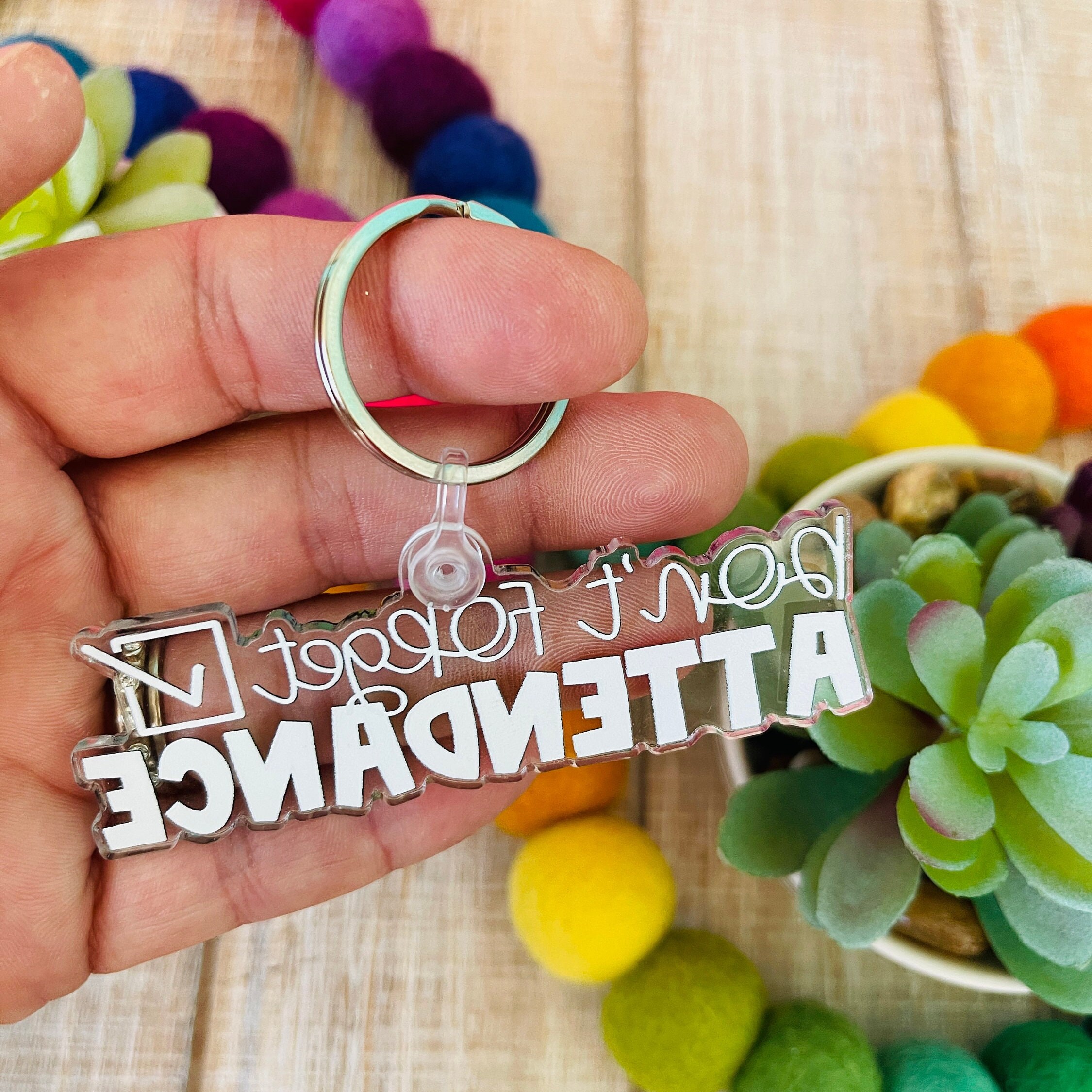 This colorful acrylic keychain is your perfect reminder to Take Attendance.