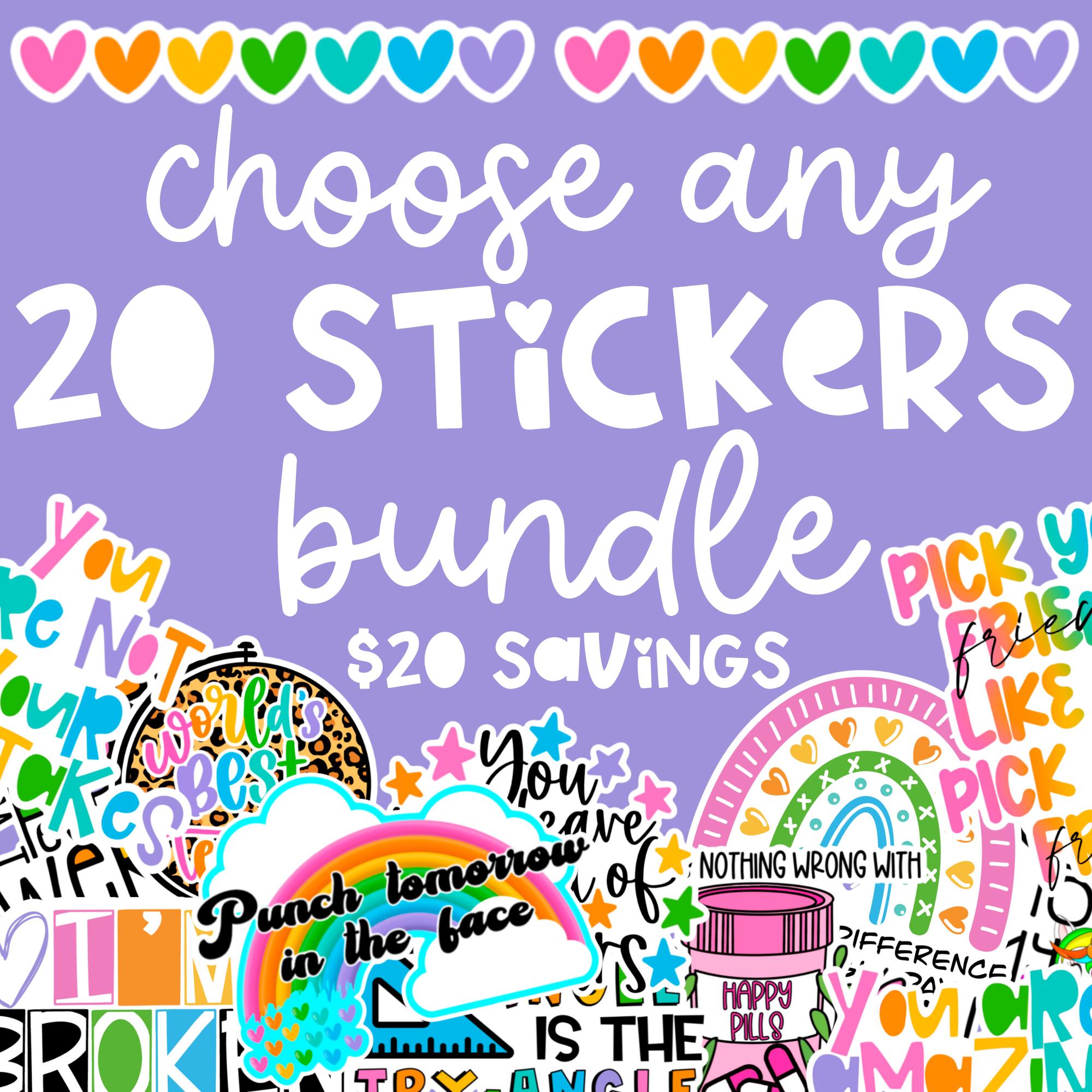 20 Sticker Bundle: https://www.etsy.com/listing/1279808710/sticker-bundle-20-sticker-pack-adult?click_key=ab7057b9c8f67fffc2be3206933a4d1c8ae7a9bf%3A1279808710&click_sum=e4adb444&ref=shop_home_feat_4&frs=1