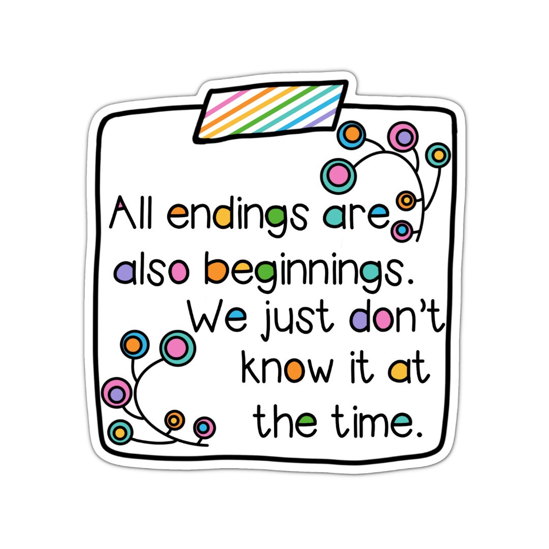 Motivational Quote Sticker: All Endings Are Also Beginnings