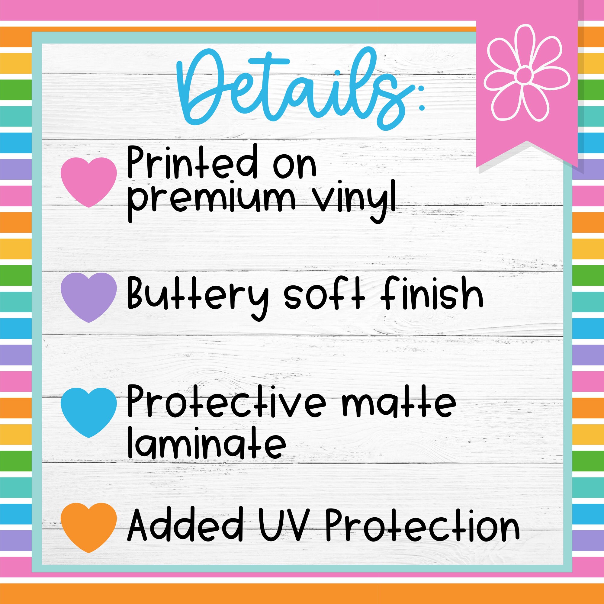Get ready to add a burst of color, motivation, and a whole lot of fun to your life with our extraordinary vinyl stickers! These stickers are not just any stickers; these bad boys are printed on top-notch vinyl, and coated in a luxurious, buttery soft matte laminate for ultimate durability and to keep them looking fabulous.