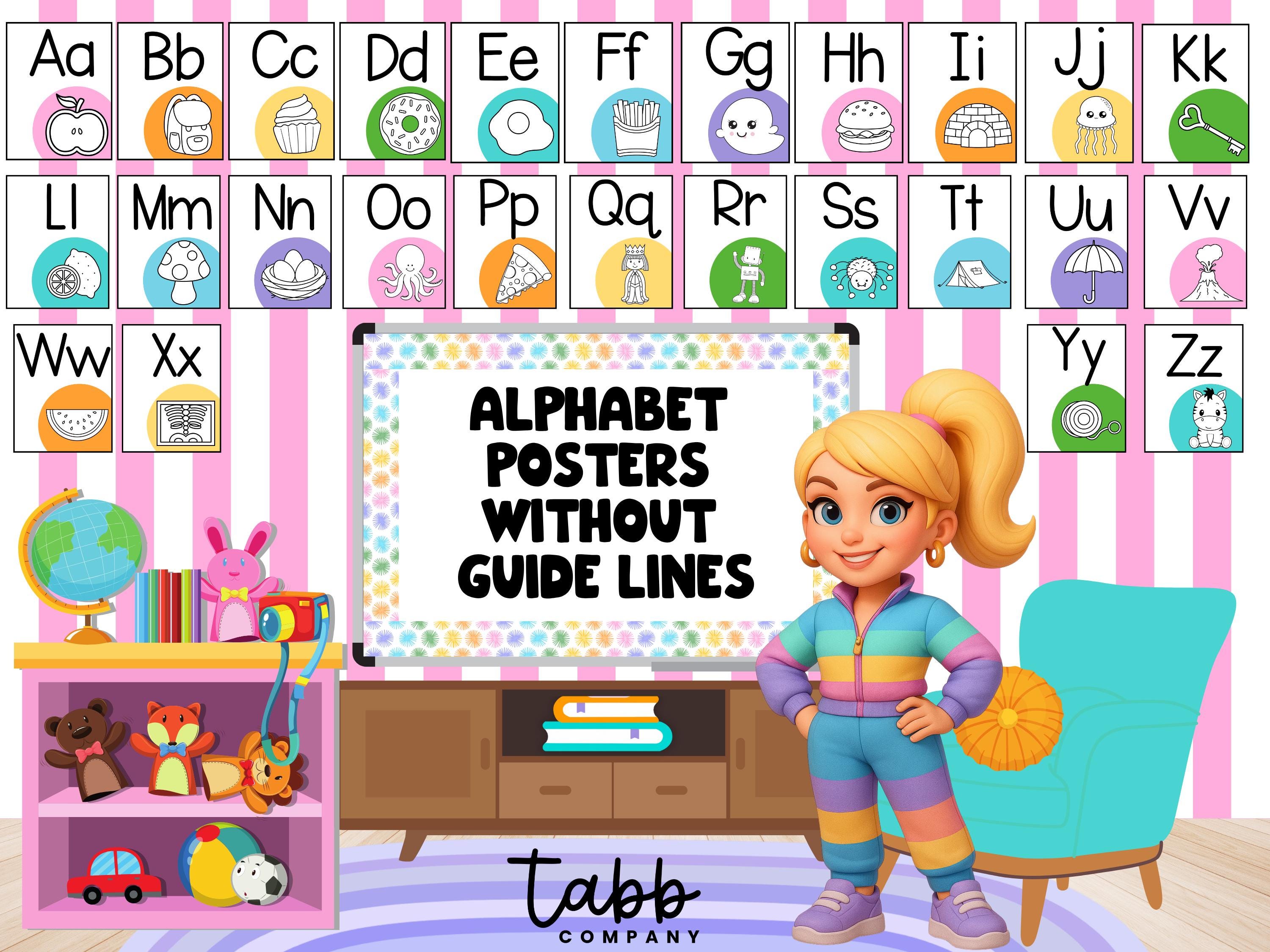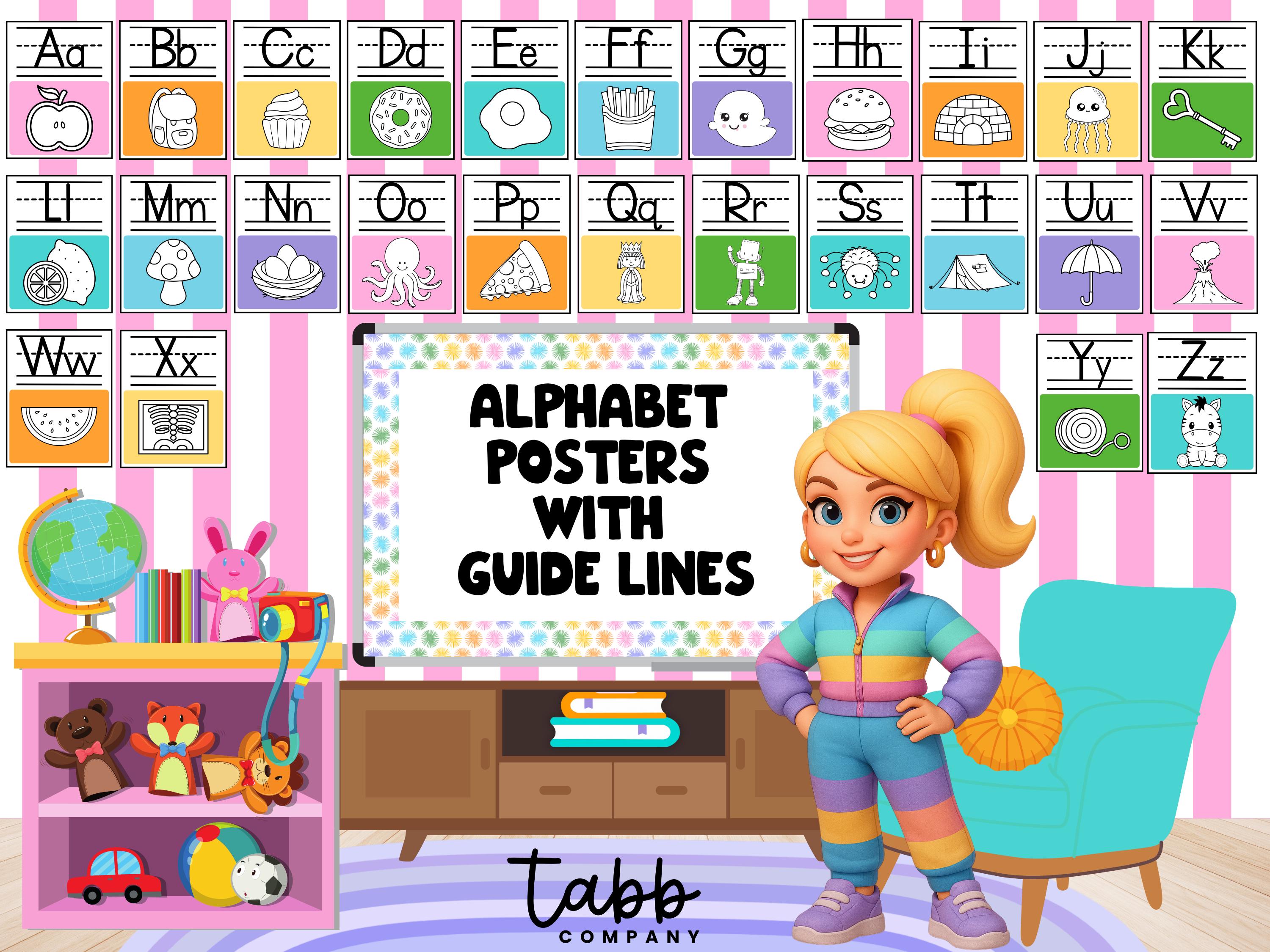 Bright, coordinated alphabet posters that make learning letters fun while keeping your classroom looking cohesive and cheerful. Perfect for early learners, teachers, and homeschool spaces.
