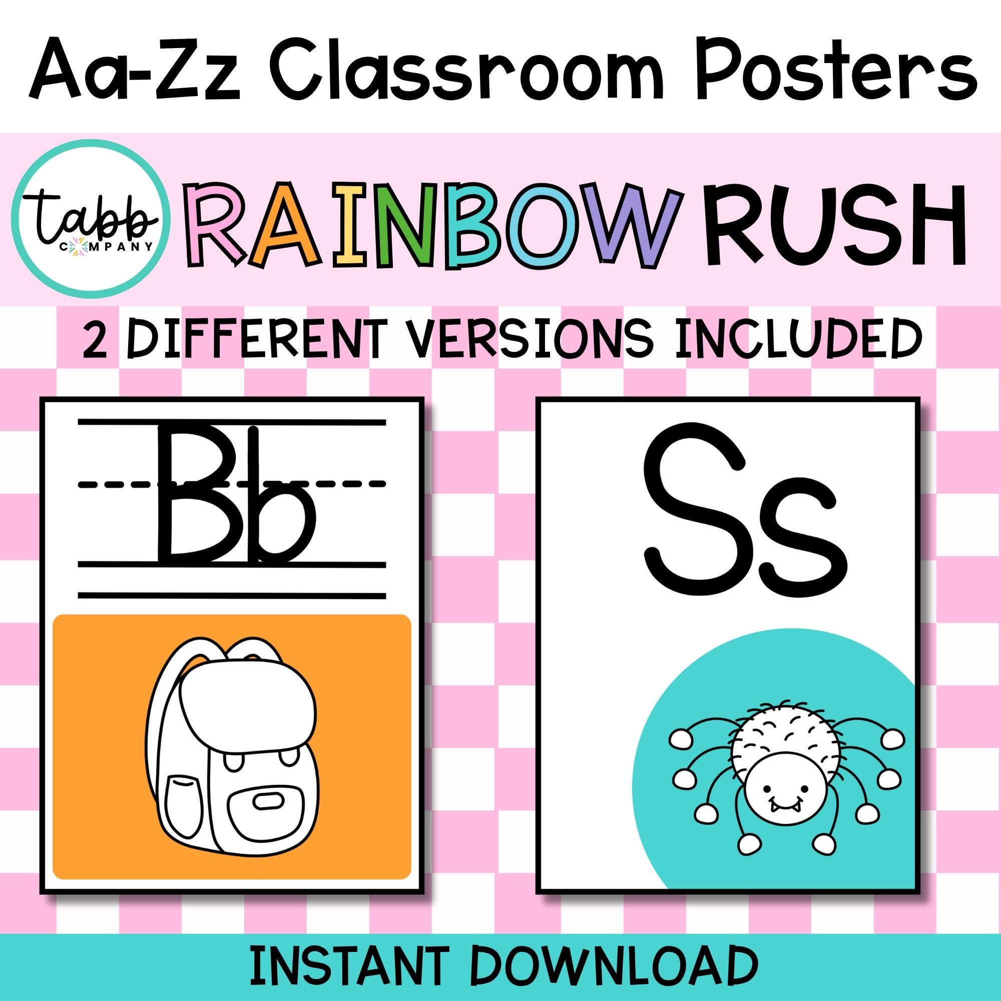 Rainbow Rush Aa-Zz Classroom Posters – 2 Versions Included!