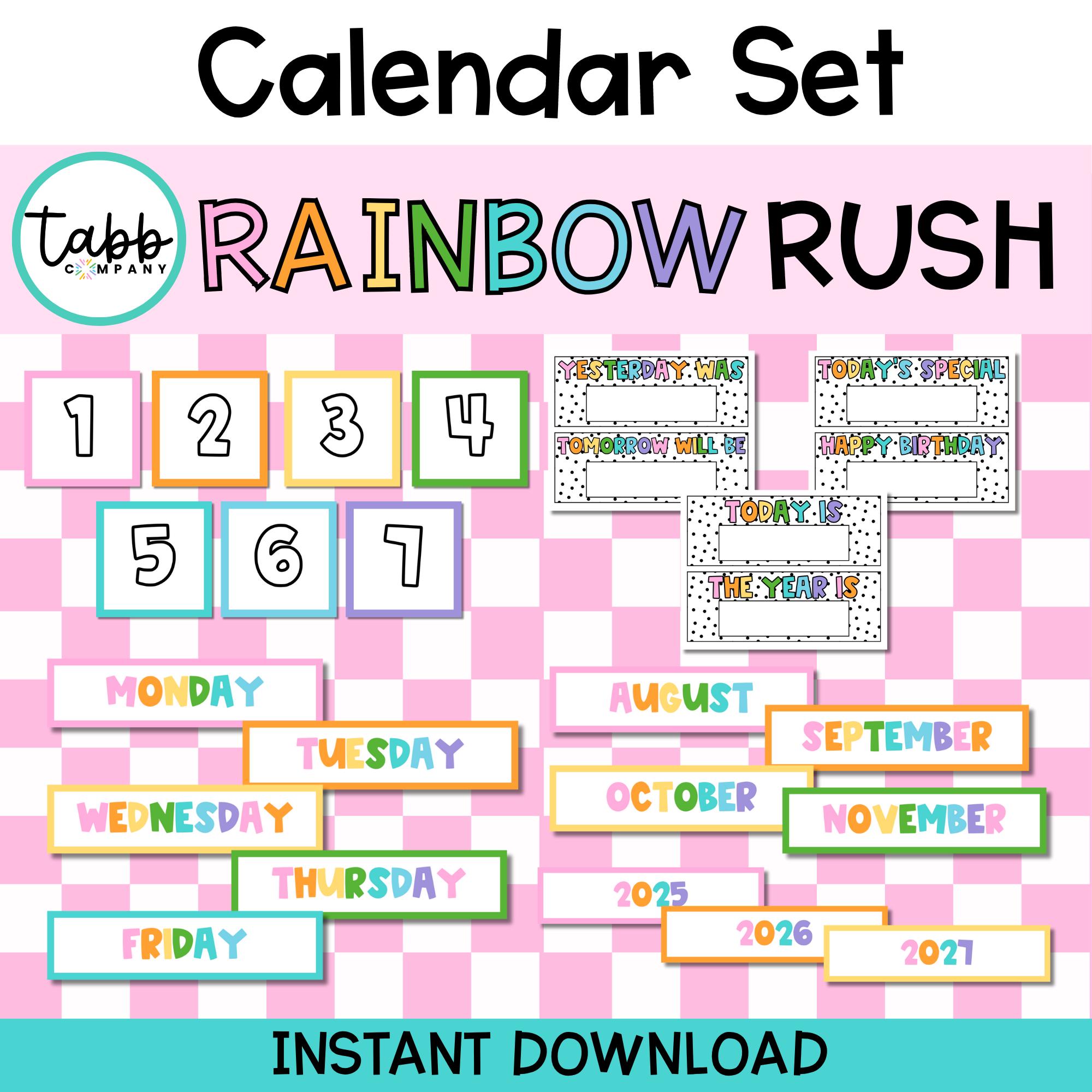 Keep your classroom organized and engaging with the Rainbow Rush Calendar Set! This bright and colorful set includes everything you need for daily calendar routines while perfectly matching your Rainbow Rush classroom theme.