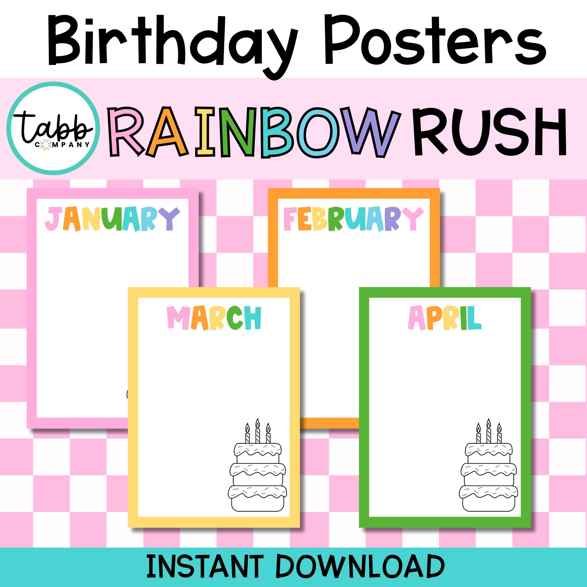 Make every student feel special on their big day with these Rainbow Rush Birthday Posters! With one poster for each month, you can keep track of birthdays all year long while adding a fun, colorful touch to your classroom decor.