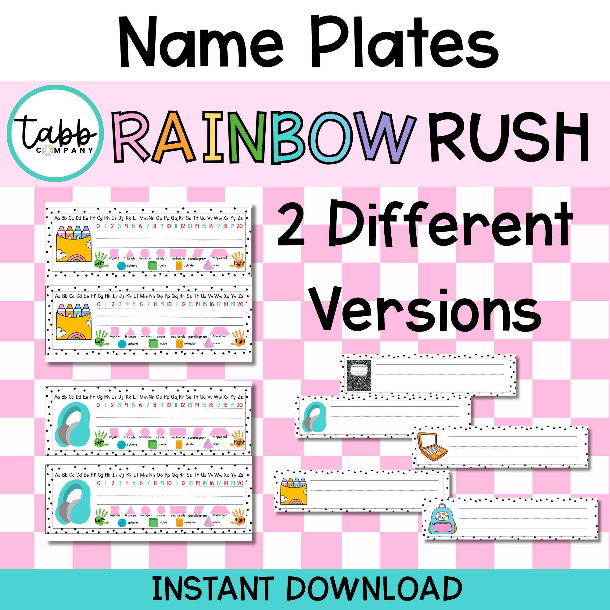 Keep your students’ workspaces organized and learning-ready with Rainbow Rush Name Plates! These colorful desk tags double as a reference tool with an alphabet chart and number line, making them a functional and decorative addition to any classroom.