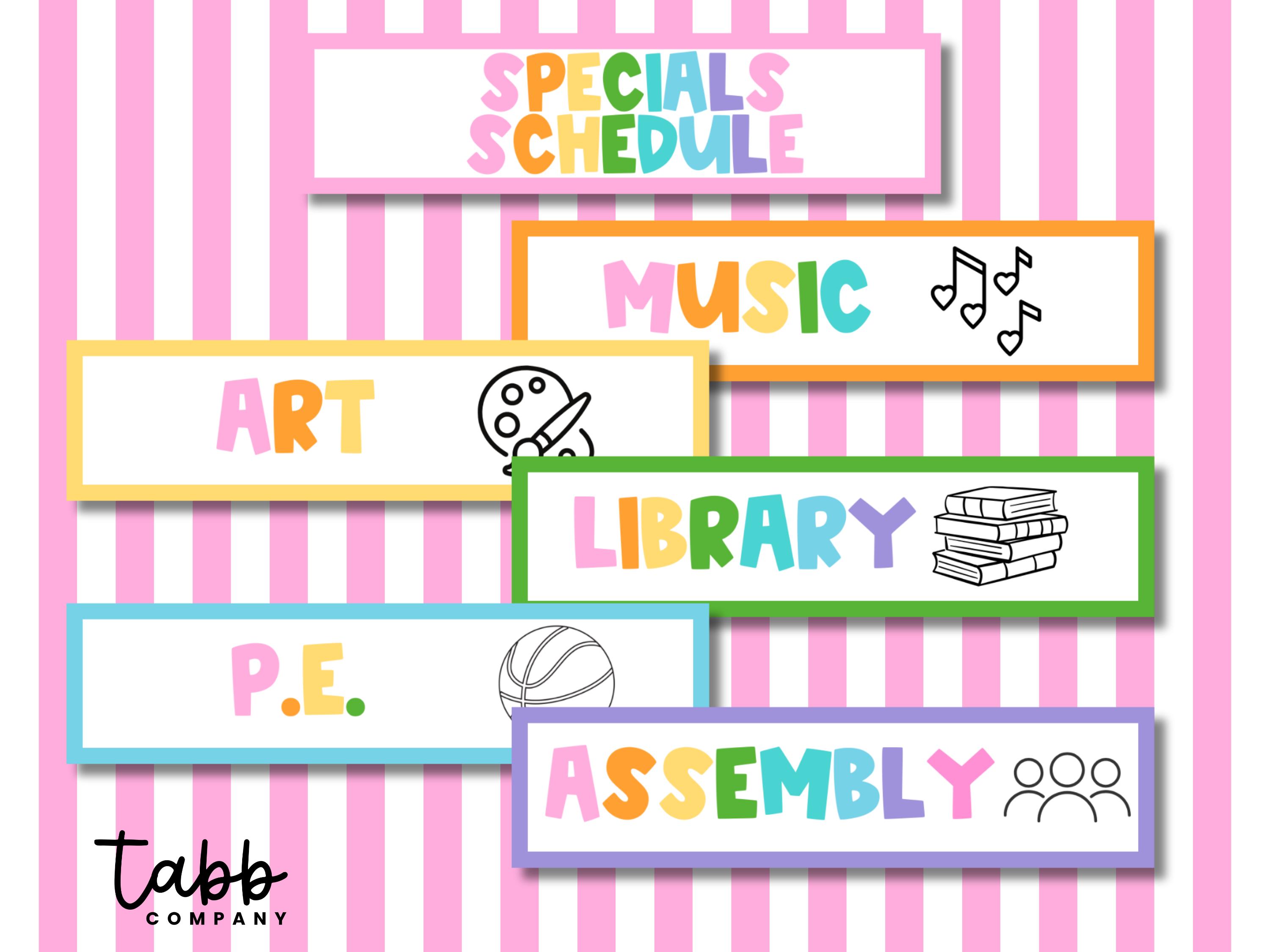 Keep your students organized and engaged with this Rainbow Rush Calendar Specials Pieces Set! Featuring colorful, easy-to-read labels for common school specials like Art, Music, PE, Library, and Assembly, these printable pieces are perfect for displaying on your classroom calendar or schedule board.