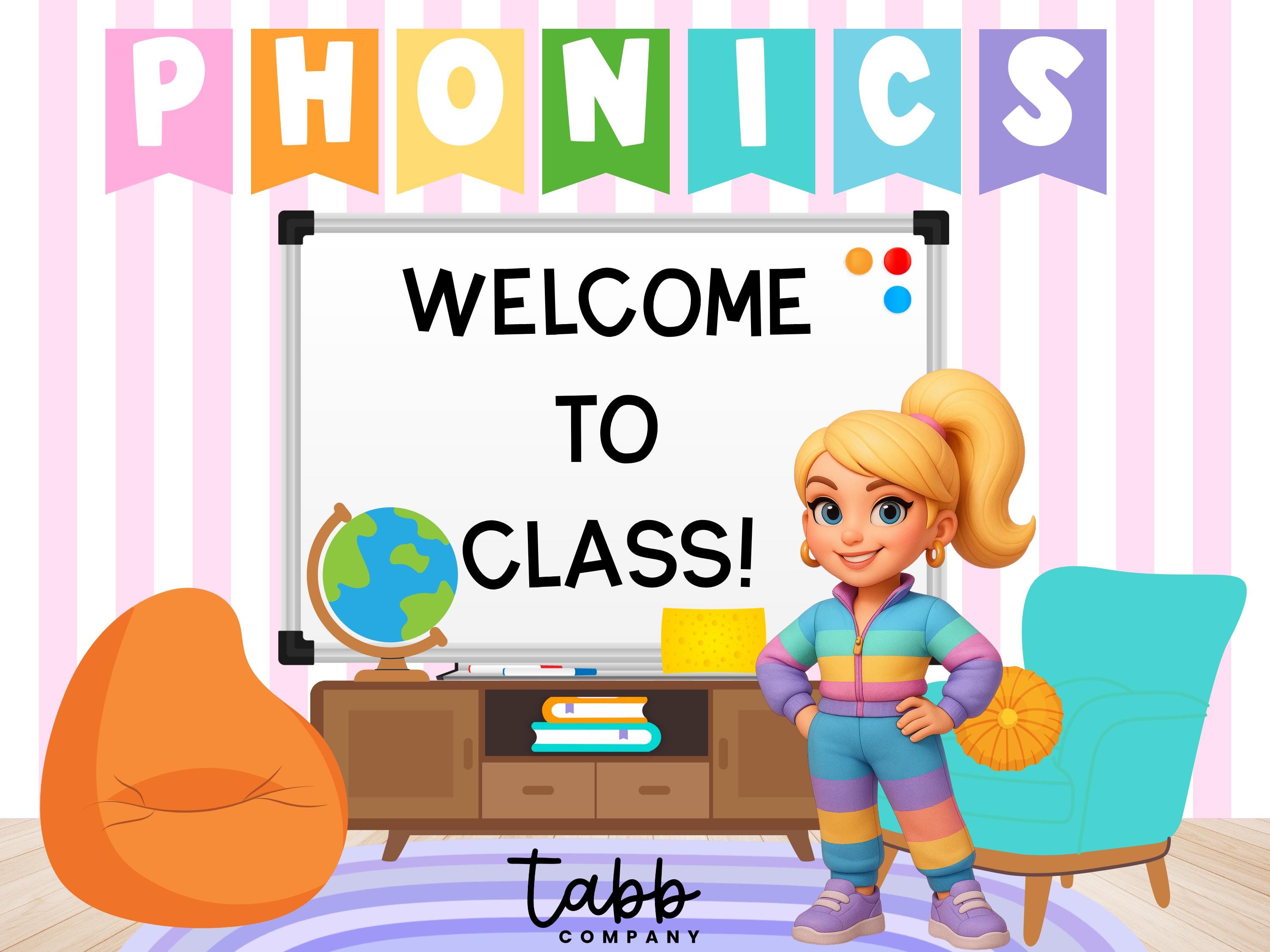 • Multiple subject banners: Phonics, Writing, Health, Grammar, Science, Math, Reading, Word Wall, Social Studies
