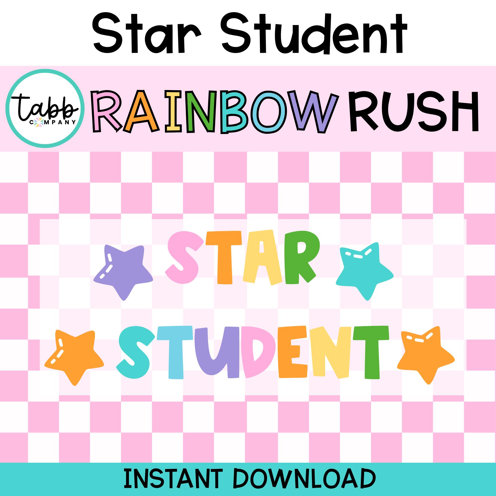 Make every student feel like a superstar with the Rainbow Rush Star Student display! Featuring bold, colorful letters and playful star accents, this printable sign is perfect for creating a cheerful focal point in your classroom. Use it for weekly, monthly, or special recognition to motivate and inspire your learners.