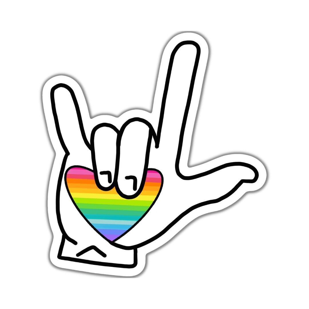 ASL Rainbow Heart Love Sticker: Die Cut Vinyl Sticker